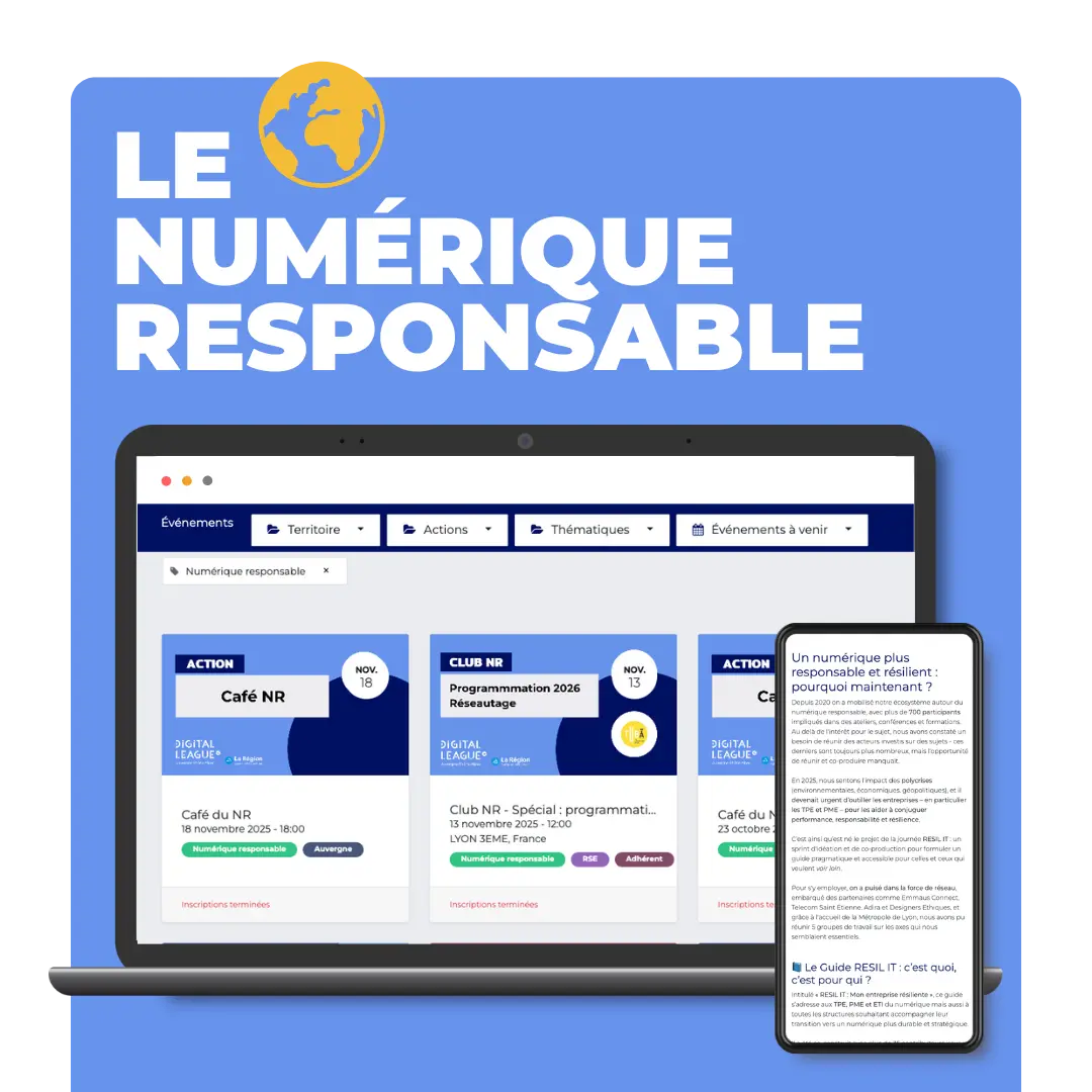 Tout au long de l'année Digital League organise et produit du contenu sur le numérique responsable. Parfois comme sujet transverse, parfois comme le sujet principal.